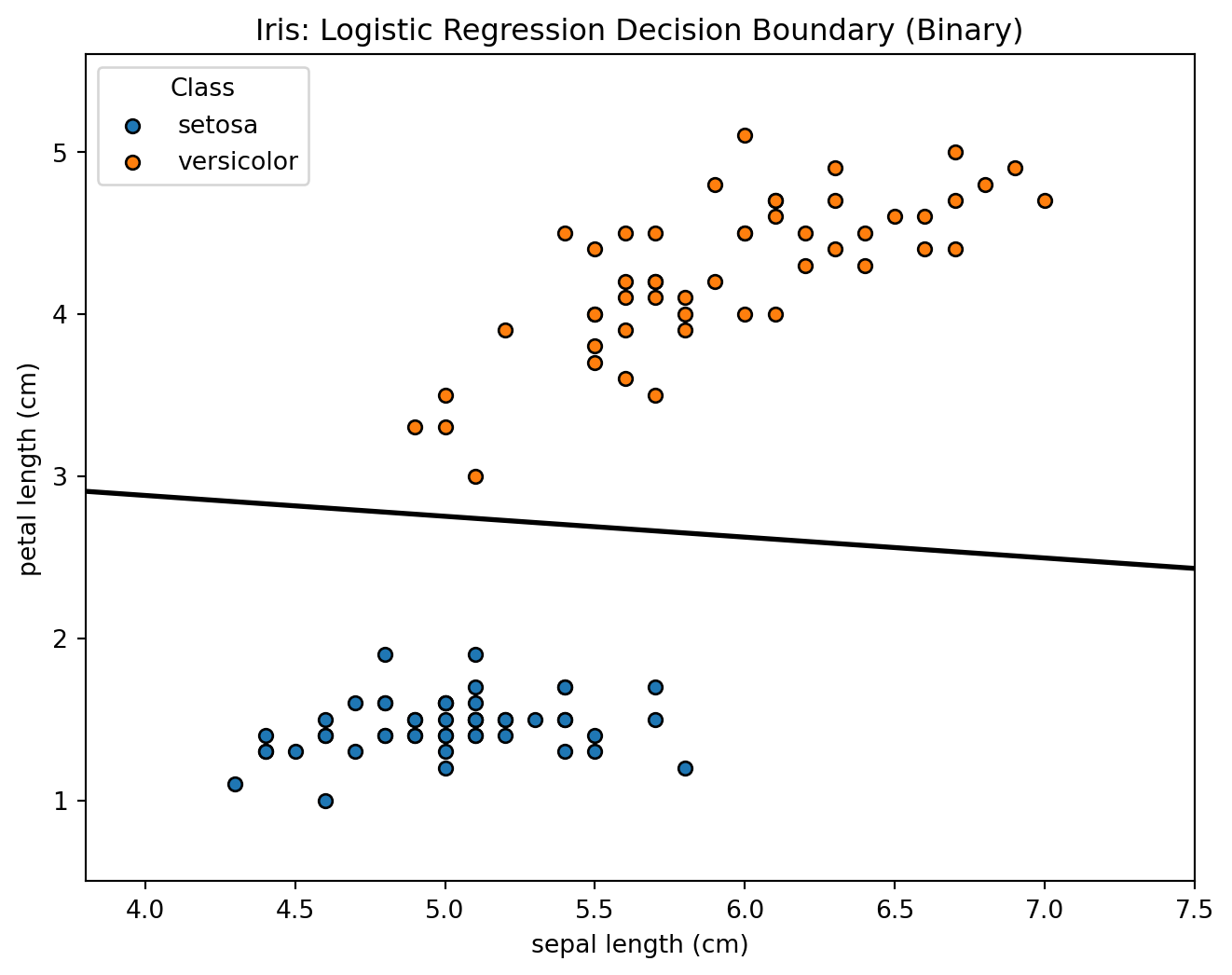 S1["$$z_k = w_k^\\top x + b_k,\\ k\\in\\{1,2,3\\}$$"] --> S2["$$\\hat{p}_k = \\dfrac{e^{z_k}}{\\sum_{j=1}^{3} e^{z_j}}$$"] --> S3["$$\\hat{y} = \\arg\\max_k \\hat{p}_k$$"]